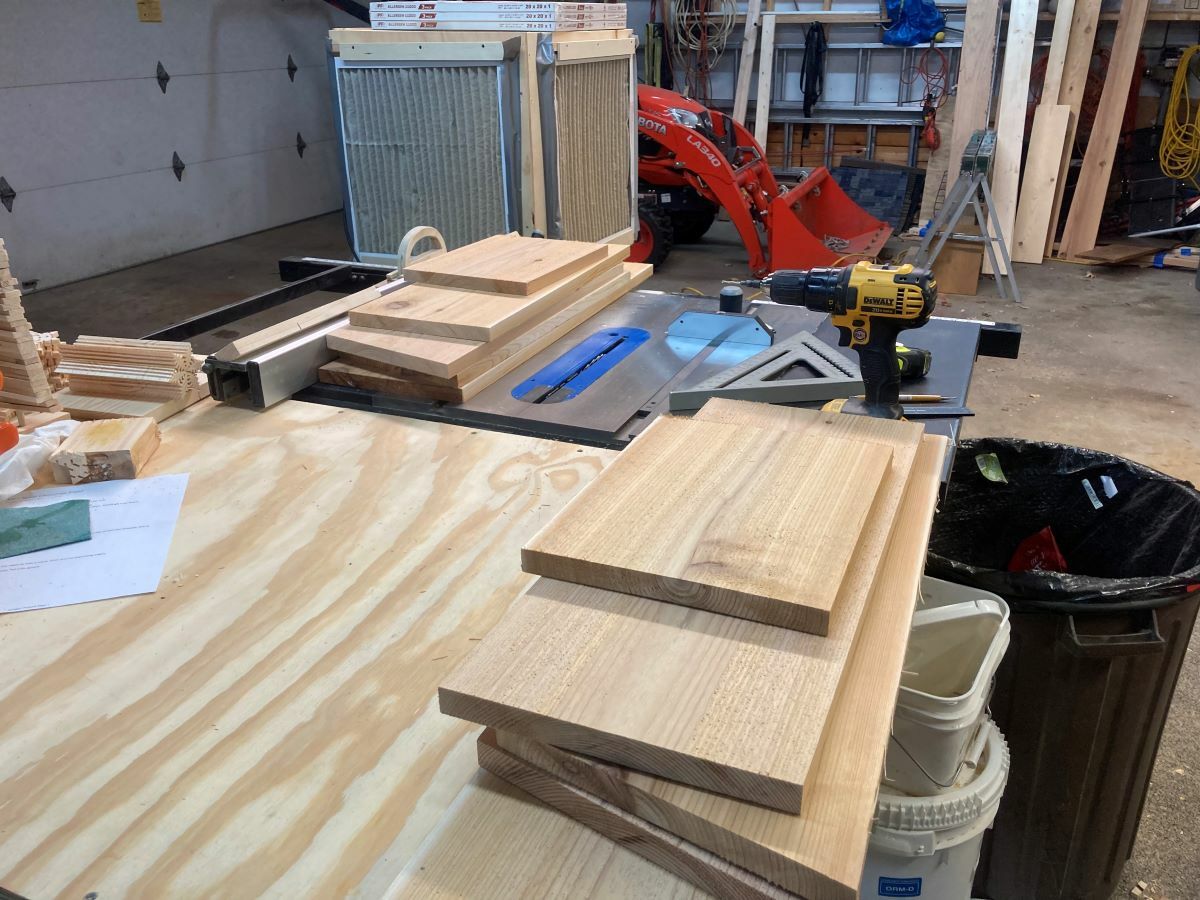 The build started with cutting down the cedar 1 x 10s into the primary parts. Then I started the assembly by putting the sides on the backs followed by the roof. Next comes the bottoms and the front door.