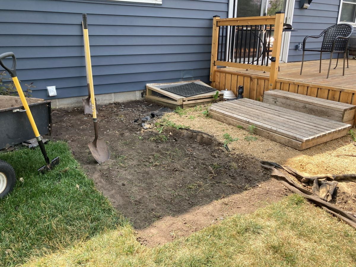 When I rebuilt the main deck last year, the area to the east remained unfinished. I had put a temporary platform and a step but we wanted an area for the grills. Originally we considered using concrete but that was going to be too expensive and too much labor.